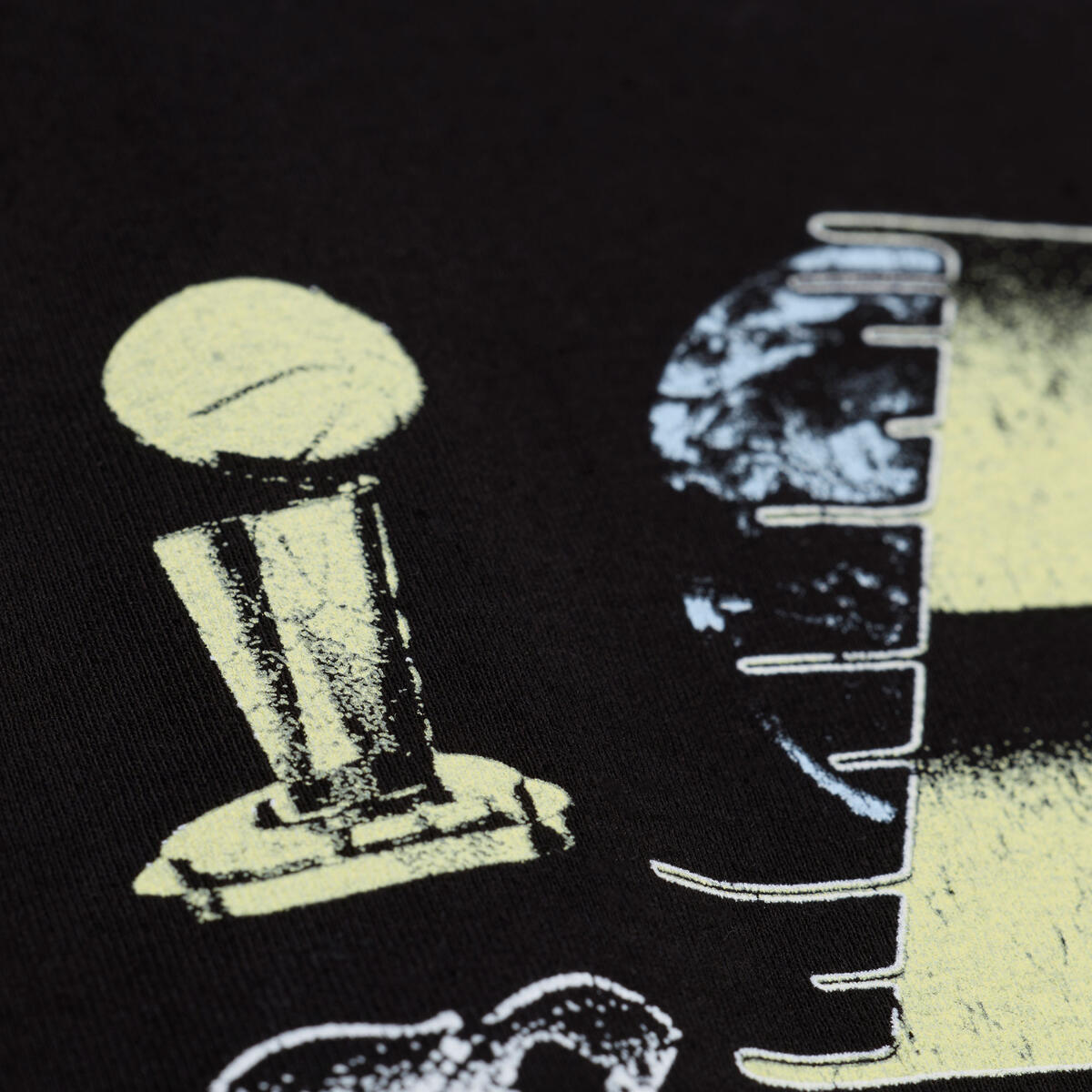 • Printed graphics with distressed details celebrating the team's NBA titles