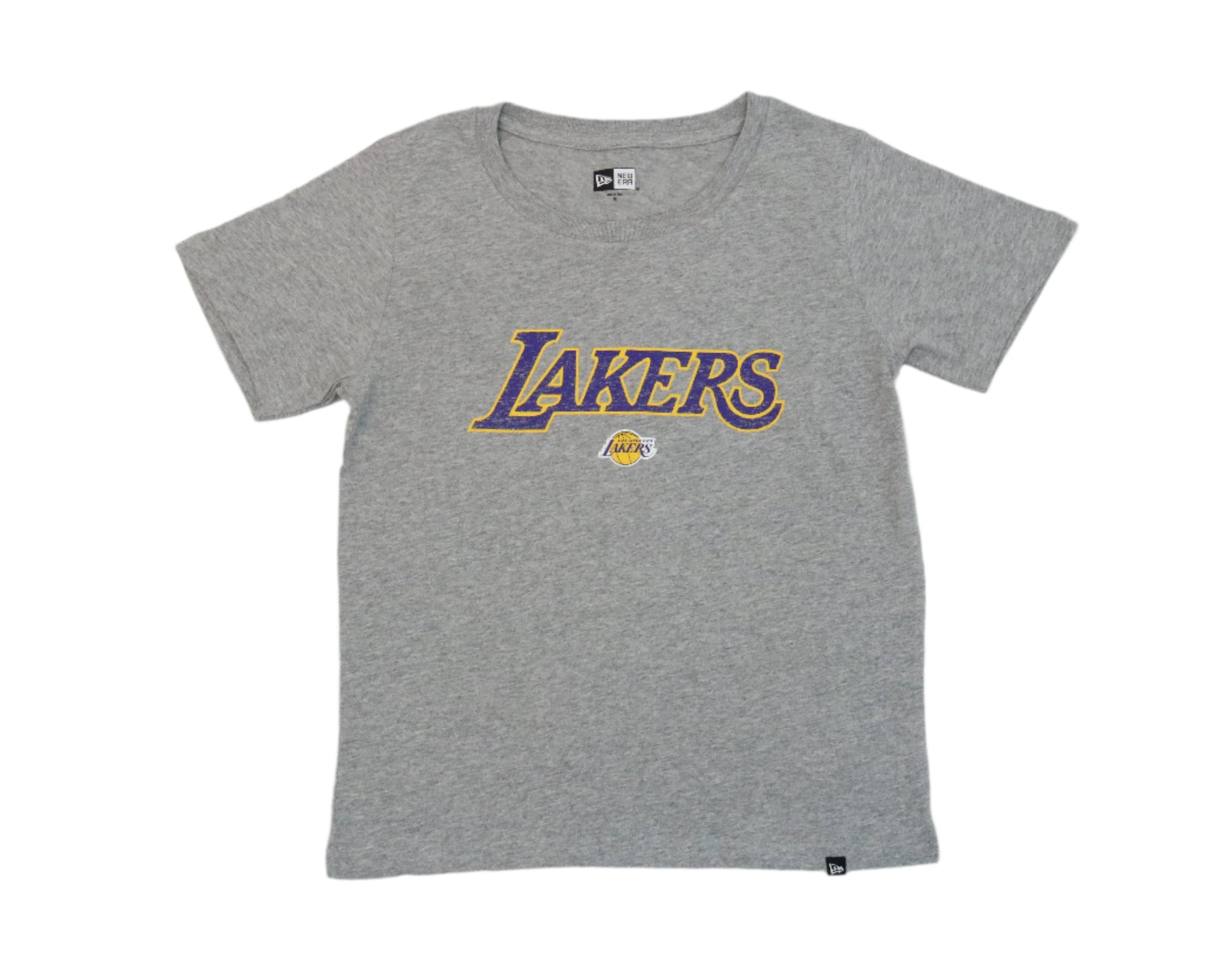 Elevate your game with the Lakers Women's Evergreen Wordmark SS Tee from New Era. Show your love for the Lakers in style and comfort with this gray t-shirt, featuring a bold wordmark that will make a statement both on and off the court. Add this essential piece to your Lakers collection now!